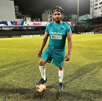 मालदीप में राघव नय्यर ने आफताब शिवदासानी के साथ मिलकर खेला फुटबॉल मैच