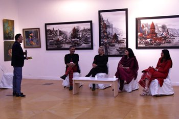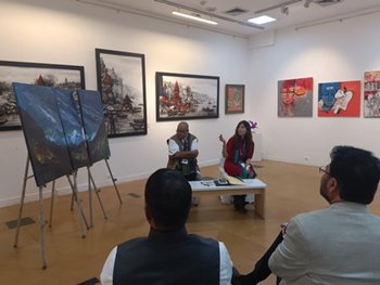 It was indeed wonderful to see the 5th AAF was bless by the powerful presence of Dr.Sonal Mansingh, Mrs. Ratan Kaul (the festival advisor to AAF), Mr. Suvir Saran ((the Collaborator to AAF), H. E  Mrs. Daniela Sezonov Tane (Ambassador of Romania to India), Mr. Uday MahurkarMr. Sunit Tandon, Ridhima Kansal, Maneesh Baheti, Ajay Jain, Dr.Blossom Kochhar, Mr. Kamal Modi, Mrs. Anita Singh  and Ms. Gunjan Goela.Furthermore, the most interesting thing was to see Artists like Sakti Burman, Jatin Das and Subodh Gupta musing at the art works and taking time to interact with all artists and AAF team members Rritu Goel, Rashi Paliwal, Ratnpriya Kant, Sharad Gurav, Satish Patil, Neerajj Mittra, Santanu Ganguly and Arka Pradhan.
