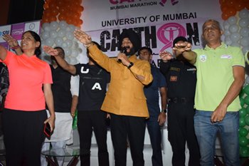 UNIVERSITY OF MUMBAI CANTHON MUMBAI MARATHON 2023 a cancer awareness run was organised by Shri Nilotpal Mrinal Trustee Nanhi Goonj Vikas Foundation in support of cancer patients, and to create awareness for health, cancer awareness and prevention in particular. The first Canthon was held in Mumbai in 2019 with more than 3,000 runners. The Canthon has now become an annual event with increased number of runners,