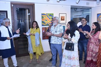 The show was inaugurated by Chief Guest, Mr Hasmukh Shah, renowned Interior Designer and Hon. Chairman, IIID ( Indian Institute of Interior Designers) and Guest of Honor Mr. Gautam Naik, Senior architect and artist . The show has been curated by Aparimita Sapru, artist and curator . The inauguration was done in the presence of participating artists and art aficionados