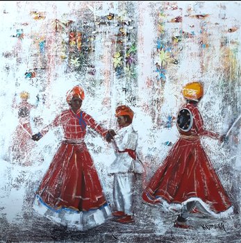 Kumar Gaikwad – His works reflect Indian culture and its heritage. He strives to capture the essence of Indian culture and traditions through his art. His works denote bright colours having thematic peculiarity and white backgrounds. His works are indicative of attractive colours and stylized forms in the unique stylish expressions.