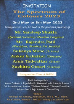 This show was inaugurated on 2nd May 2023 by Sukanya Mone(Actress), in the presence of Mr. Sandeep Shukla(General Secretary Mumbai Congress), Ankur Kakatkar(Director), Amir Tadwalkar(Actor), Suchitra Gosavi(Actress), Vishwanath Sable(Dean – Sir JJ School of Art), Nitin Jadia(Art Lover) and others.