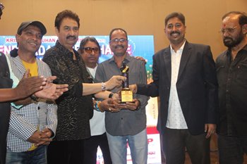 Dr. Krishna Chouhan’s birthday was celebrated by cutting a grand cake on the stage. Kumar Sanu wished him Happy Birthday by feeding him a cake and appreciated the efforts of Krishna Chouhan for organizing such an award function.