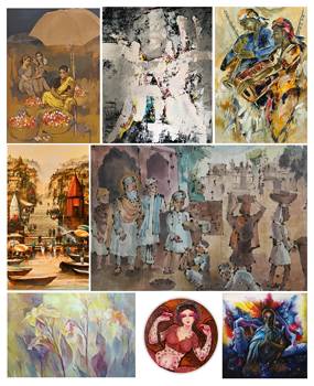 The hues and peculiarities of the beauty of nature in vivid seasons, wonders of nature, realms of life, landscapes, cityscapes, historical monuments and traditional heritage of Indian culture and its various vignettes, sensitive mindscapes and the emotions in the human minds in apt arena and environment along with the desired visual textural effects and finesses created by the participating artists will be displayed in this exhibition.
