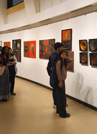 Vinay blends realism with beautification, often depicting static, emotionally distant figures, with decorative elements floating around as if they are residues of memory or psyche. Virendra Chopde displays his skill in portraying beautiful, elegant, simplified forms highlighted with his distinct style.